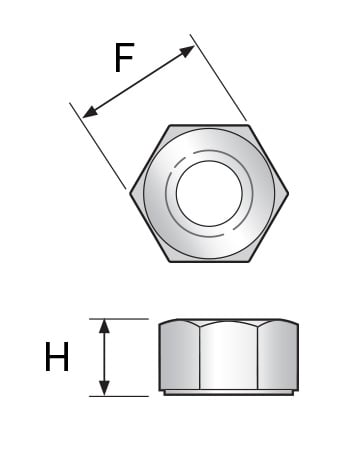 | Thread Diameter | Dimension F | Dimension H | Nut Weight | ||