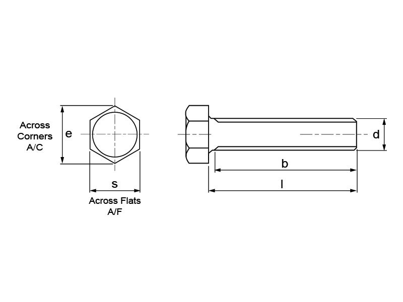 | SKU | Dia.-Pitch | Length | A/F [ s ] | A/C [ e ] | Thread Length [ b ] |