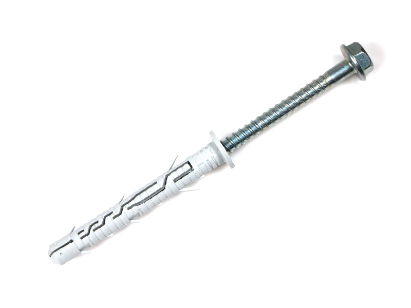 Frame plug installs through fixing, supplied with a zinc plated hex flange screw for effective anchoring into lightweight concrete and perforated brick materials. The nylon plug is made from high-quality polyamide PA6 for both indoor and outdoor applications.