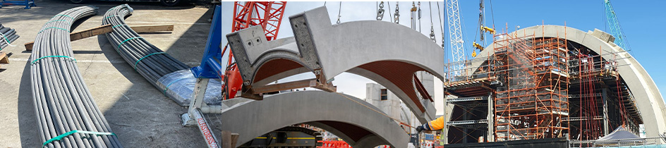 Forty-five thoughtfully designed segments are currently used to make 15 arches in the cut-and-cover project, weighing between 48 and 60 tonnes. Each arch requires the sides to be secured to the ground and then the keystone cap to be connected to those side segments. The design challenge was the curve in the upper segments and how to secure them.