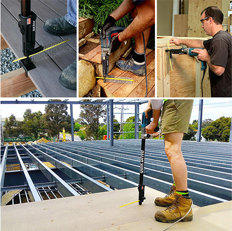 The Quik Drive® auto?feed screw driving system is an ideal solution to save time and effort when fastening subfloors, wall plates and decks to timber and steel joists. The auto-feed design uses collated screws to enable quick and easy fastening. The holding power of fasteners designed to be used in the Quik Drive® system reduce gaps that cause floor squeaks, screws also prevent fastener heads from popping up above the boards.