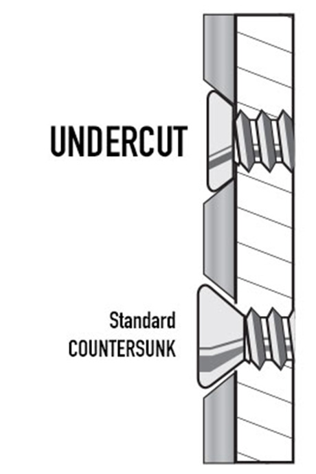 Undercut screws have a flat bottom under the head, as opposed to a conical head that tapers down to the shank. With the conical taper taken out of the equation, the hinge screw sits firmly against the countersunk hole in the hinge, with 100% contact, before the bottom of the head gets anywhere near the surface you are fixing to.
