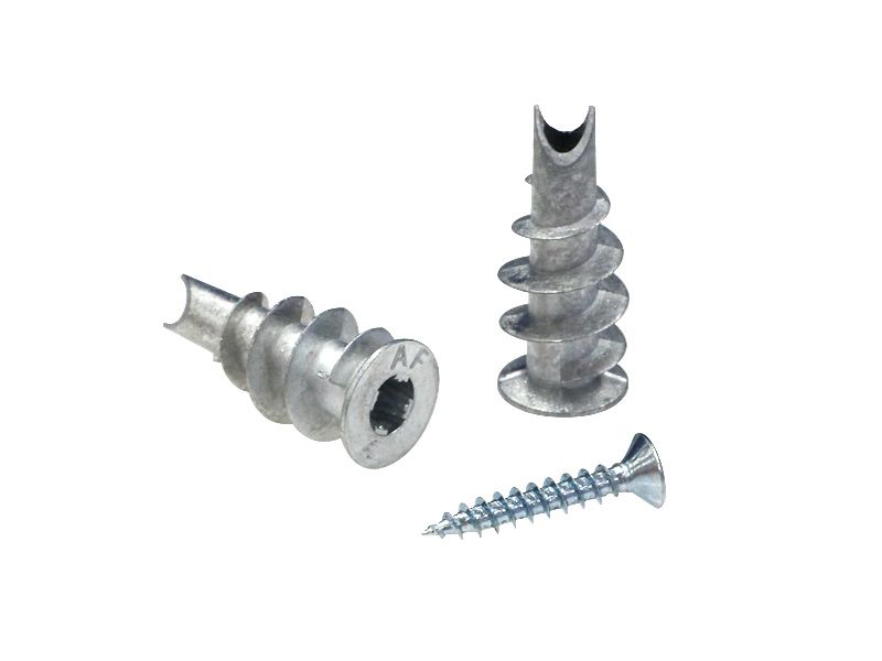 The anchor is a one-piece zinc alloy or nylon self drilling anchor designed for use in hollow gypsum wallboard for light to medium duty loads. Creates a secure fixing point in plasterboard for use with chipboard screws or type AB point screws.