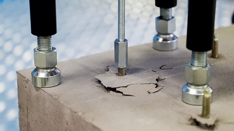 If it is deemed necessary to verify correct installation, proof tests are conducted on a sample of project’s anchors. The test load (proof load) is to be determined by the responsible engineer and is project dependent. The maximum test load should not exceed both of the following to avoid damage: