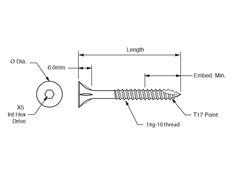 1205.0140100 | 14-10 x 100mm | Gr316 | 5mm Hex | 14-10 x 100mm |